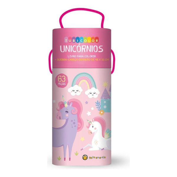 Explore o mundo maravilhoso dos unicórnios neste livro para colorir! Inclui quebra-cabeça dupla-face grandão de 48 x 33 cm com 63 peças. Embalagem em forma de tubo para brincar