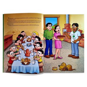 A Turma da Mônica e do Chico Bento, do consagrado quadrinista Mauricio de Sousa, embarcam em uma aventura com o professor Tupã pela Vila Abobrinha. Com texto de Sérgio Olaya, especialista em agrofloresta, eles vão aprender muito sobre a natureza e seus poderes mais que mágicos. “Estes incríveis personagens que vivem as aventuras desta visita ao sítio da Dona Cotinha e do seu Tonico, onde conhecem o professor Tupã e iniciam sua jornada de conhecimento cheia de curiosidade, descobrem que na floresta não domesticamos todos os animais, que o leite servido às crianças não vem da vaca, que não precisamos usar espantalhos contra as muitas e variadas aves na floresta, dispensando a criação de galinhas.O novo professor que eles conhecem nada com a turma no ribeirão — menos com o Cascão, que foge da água como um gato! E Tupã conta para as crianças na roda da fogueira sobre a sua Escola da Floresta e sobre as árvores que fabricam água! Tudo novo, na prática agroflorestal, uma maneira de produzir com fartura e abundância tudo de que precisamos para viver, com diversidade de plantas e bichos, em consórcio e colaboração de espécies. Professor Tupã fala de ecossistemas e biomas, além de ensinar que vivemos todos em lugares definidos por rios — as bacias hidrográficas.Uma fantástica aventura do conhecimento, com a turma toda descobrindo uma nova tecnologia (!) com a floresta produzindo chuvas, e o convite surpresa de Tupã para que todos passem um tempo fazendo plantios florestais, criando chuvas na sua Escola da Floresta.Ah, e quase ia me esquecendo! Preciso falar do autor deste conto que virou uma historinha com a Turma da Mônica e a Turma do Chico Bento. Ele é um professor para mim também. Sérgio Olaya veio à aldeia Krenak, onde moro, e trouxe sementes variadas, mudas de árvores nativas do Brasil, com uns amigos plantadores de chuvas. Claro que eu retribuí esse presente que nos deram com um convite para a Dança do Fogo. Mas isso é outra história.”