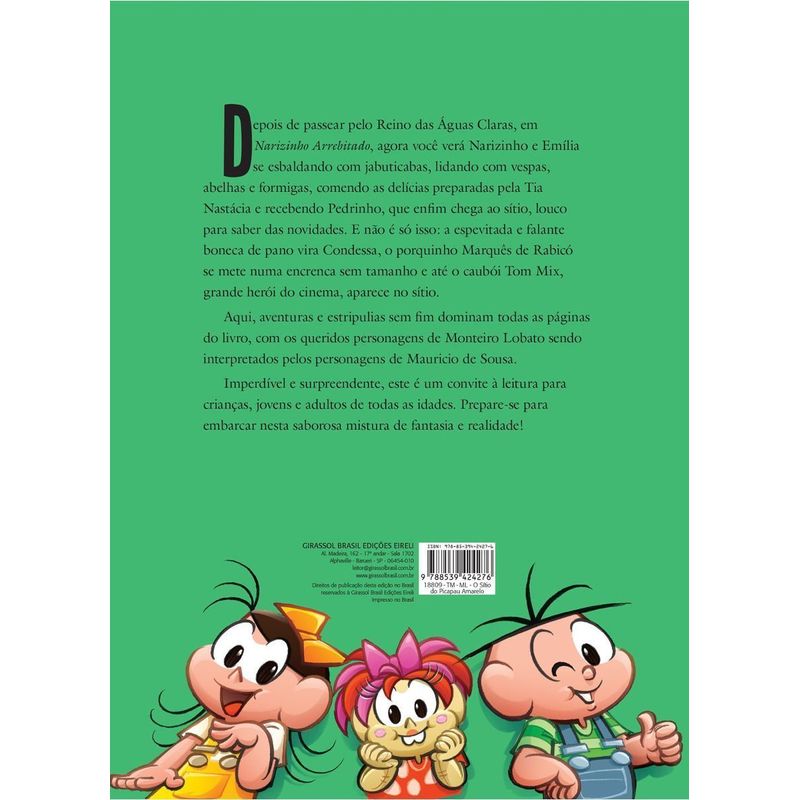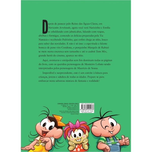 “Neste livro, você verá Narizinho e Emília se esbaldando com jabuticabas, lidando com vespas, abelhas e formigas, comendo as delícias preparadas pela Tia Nastácia e recebendo Pedrinho, que chega ao sítio, louco para saber as novidades. E não é só isso: a espevitada e falante boneca de pano vira Condessa e o porquinho Marquês de Rabicó se mete em uma encrenca sem tamanho! Aqui, aventuras e estripulias sem-fim dominam todas as páginas do livro, com os queridos personagens de Monteiro Lobato sendo interpretados pelospersonagens de Mauricio de Sousa.Pontos de interesse:> Narrativa ágil, moderna, engraçada e provocante> Estimula o pensamento crítico e a tolerância> Associa em um livro único o talento de dois dos mais importantes artistas brasileiros com obras voltadas ao público infantojuvenil: Monteiro Lobato e Mauricio de SousaTemas abordados:> Assertividade, autoconfiança, criatividade, entusiasmo, experimentação e a imaginação.”
