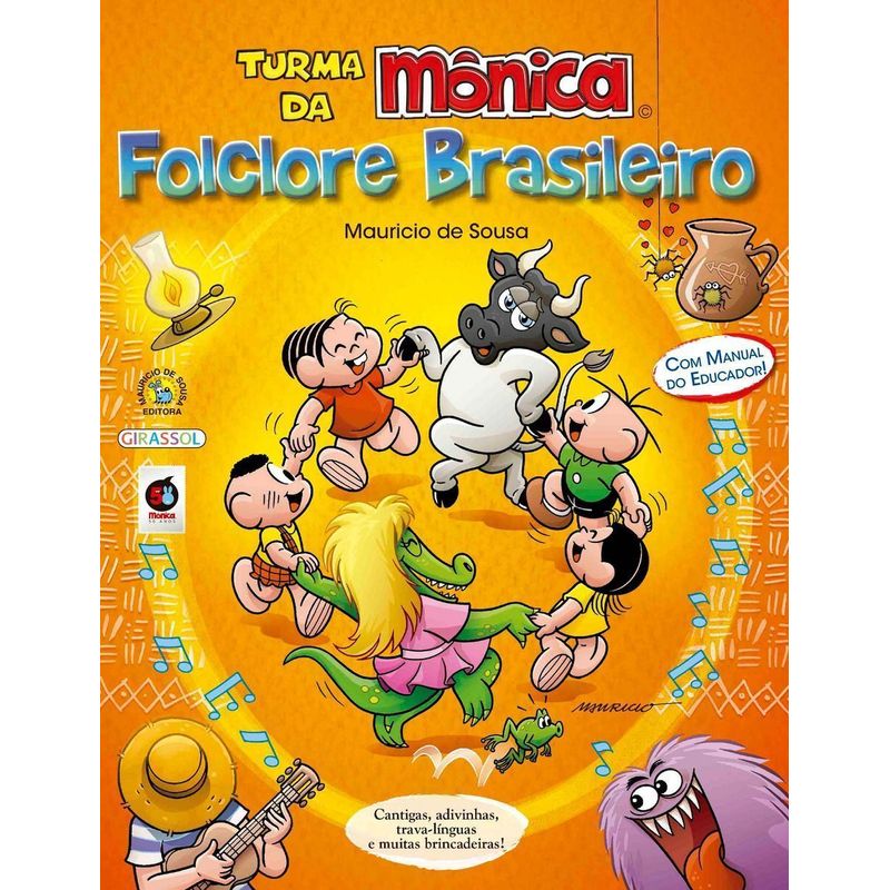 Um dos aspectos mais ricos da cultura brasileira é o seu diversificado folclore. São cantigas de roda, parlendas, pegadinhas, trava-línguas, músicas, adivinhas, provérbios, crendices, trovas, acalantos e brincadeiras que atravessaram gerações e gerações e até hoje encantam as crianças. Neste livro, os personagens da brasileiríssima Turma da Mônica mostram o quanto o folclore está presente no nosso dia a dia e como continua atrativo, mesmo em tempos de computadores e videogames. Afinal, manter o folclore brasileiro vivo é missão de todos nós. Este livro já se tornou um clássico mais que indispensável! Vem ainda com um guia do professor ao final do livro com muitas divas de atividades para desenvolver com os pequenos e trabalhar de forma interdisciplinar. Conteúdo especialmente desenvolvido com curadoria psicopedagógica.