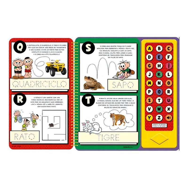 Qual é o som do avião? E do barco? Aprenda o alfabeto, enquanto ouve diferentes sons e faz atividades no decorrer das páginas. Use a caneta para escrever e, depois, apague com um pano seco.
