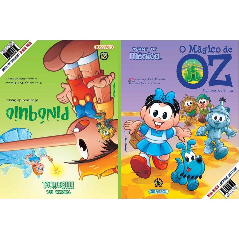 Chico Bento dá vida à Pinóquio, enquanto o divertido Zé Lelé encarna o Grilo Falante. Os aprendizados da Fada Azul não poderiam ser transmitidos por outra pessoa que não fosse a sábia professora Marocas. E ninguém mais especial que o próprio Mauricio de Sousa para interpretar Gepeto e transmitir tanto amor a uma de suas criações. A coleção Grandes Clássicos – que reúne renomadas obras da literatura infantil universal, sempre com os amados personagens de Mauricio de Sousa – vai encantar ainda mais os leitores, que poderão colecionar os mais belos livros da turminha. Mônica é Doroti, acompanhada por seu fiel escudeiro Totó, interpretado por Bidu. Cebolinha e Cascão buscam coragem e um coração, dando vida ao Leão e ao Homem de Lata. Chico Bento deixa a roça de lado, mas não tanto assim, e incorpora o Espantalho. E Mauricio de Sousa, criador do universo mágico da Turma da Mônica, interpreta o Mágico de Oz, nesta aventura emocionante!