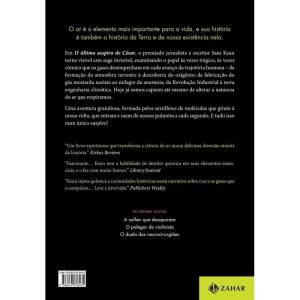 Em O último suspiro de César, o premiado jornalista e escritor Sam Kean torna visível esta saga invisível, examinando o papel às vezes trágico, às vezes cômico que os gases desempenham em cada avanço da trajetória humana – da formação da atmosfera terrestre à descoberta do oxigênio; da fabricação do gás mostarda nazista ao milagre da anestesia; da Revolução Industrial à nova engenharia climática. Hoje já somos capazes até mesmo de alterar a natureza do ar que respiramos.