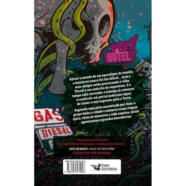 “Terrivelmente divertido! Uma série cheia emoções e risadas ainda maiores.” Jeff Kinney, autor do best-seller Diário de um banana Salvar o mundo de um apocalipse de zumbis e monstros nunca foi tão difícil… Jack e seus amigos estão procurando o vilão Thrull e seu exército de esqueletos. E o tempo está correndo contra eles: o inimigo já começou a construir um portal poderoso capaz de trazer o mal supremo para a Terra. Seguindo uma pista encontrada por June, o grupo deixa a cidade e embarca numa viagem épica, cheia de monstros a cada esquina, locais apavorantes e grandes descobertas. Para quem ama histórias divertidas sobre amigos desbravando o mundo enquanto o salvam de monstros terrivelmente perigosos. Os últimos jovens da Terra — A estrada dos esqueletos, lançamento da Faro Editorial, é a aventura que não pode faltar para a família.