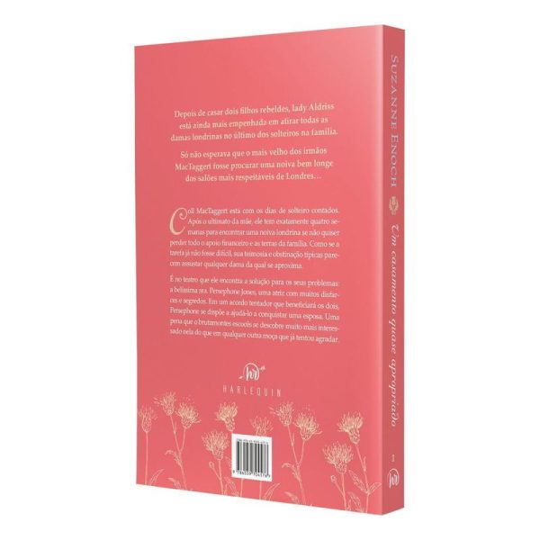 Neste volume da aclamada trilogia Os Indomáveis Irmãos MacTaggert, a autora best-seller de romances de época Suzanne Enoch nos presenteia com mais um romance pulsante, recheado com as melhores intrigas e escândalos da sociedade londrina, fechando com chave de outro a história dos três irmãos highlanders mais sedutores de Londres! Depois de casar dois filhos rebeldes, lady Aldriss está ainda mais empenhada em atirar todas as damas londrinas no último dos solteiros na família. Só não esperava que o mais velho dos irmãos MacTaggert fosse procurar uma noiva bem longe dos salões mais respeitáveis de Londres… Coll MacTaggert está com os dias de solteiro contados. Após o ultimato da mãe, ele tem exatamente quatro semanas para encontrar uma noiva londrina se não quiser perder todo o apoio financeiro e as terras da família. Como se a tarefa já não fosse difícil, sua teimosia e obstinação típicas parecem assustar qualquer dama da qual se aproxima. É no teatro que ele encontra a solução para os seus problemas: a belíssima sra. Persephone Jones, uma atriz com muitos disfarces e segredos. Em um acordo tentador que beneficiará os dois, Persephone se dispõe a ajudá-lo a conquistar uma esposa. Uma pena que o brutamontes escocês se descobre muito mais interessado nela do que em qualquer outra moça que já tentou agradar.
