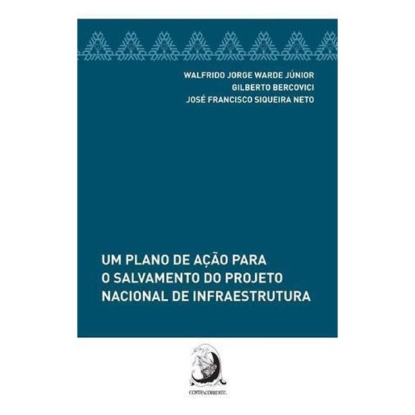 Este estudo apresenta soluções concretas para o salvamento dos mercados de infraestrutura e crédito, profundamente abalados pelo cenário político atual do Brasil. A Editora Contracorrente apresenta ao público o resultado do esforço intelectual de três grandes juristas brasileiros: Walfrido Jorge Warde Júnior, Gilberto Bercovici, José Francisco Siqueira Neto. Intitulado de “Um Plano de Ação para o Salvamento do Projeto Nacional de Infraestrutura”, o estudo destes três eminentes brasileiros preocupados com a crise atual traz um verdadeiro plano para salvar o projeto nacional de infraestrutura e impedir que uma verdadeira catástrofe se abata sobre o nosso país, com gravíssimas e indesejáveis consequências econômicas, políticas e sociais. Certamente estamos diante de um documento histórico, que inspirará importantes decisões ou marcará omissões fatais.