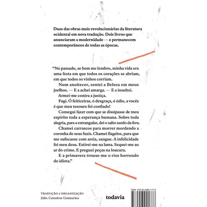 Esta edição reúne as duas obras-primas rimbaudianas: Um tempo no inferno (1873) — a única obra que o autor publicou em vida, numa tiragem pequena, em parte financiada por sua mãe — e Iluminações, com textos escritos até 1875, estão entre os pontos mais altos do poema em prosa. E vão além disso: parecem ora anunciar a autoficção, ora grandes autores da modernidade, como André Breton, James Joyce, Andrei Biéli e Samuel Beckett.