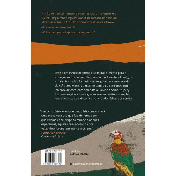 Esta é uma fábula mágica sobre liberdade e fantasia que resgata o encanto oral de As mil e uma noites, ao mesmo tempo que encontra eco na obra de escritores como Italo Calvino e Saint-Exupéry. Um voo mágico sobre a guerra em um território singular, entre a certeza da História e as verdades éticas dos sonhos. Em 24 de junho de 1935, chegava à África o jovem piloto Giulio Giamò, a bordo de Vida Nova, seu extravagante trimotor Caproni 133. O destino: Eritreia. A missão, secreta até para ele mesmo, era entregar, entre outras cartas e para os mais diversificados destinatários, uma declaração de guerra assinada por Mussolini ao Negus Hailé Selassié, soberano abissínio. Enquanto Giamò espalhava mensagens de paz e de guerra por aquele território, Beba Mondio, o sábio e melancólico capitão que só conhecia a guerra através do cinema, Papamundo, o papagaio filósofo-falante, e Tsahai e Amalik, os amantes inseparáveis, cuidavam de apresentar ao piloto uma nova e desafiadora visão de mundo. A trama tem como pano de fundo a invasão italiana à Abissínia, antigo império etíope, e também a Segunda Guerra Mundial. Do alto, “o carteiro do céu” e os tripulantes que o acompanham nesta aventura buscam sobreviver à brutalidade da guerra enquanto vivem encontros mágicos com a riqueza cultural da África e de seus povos. Do Lago Tana às margens do Nilo Azul, o leitor e a leitora acompanham diálogos virtuosos sobre o amor, a coragem, a liberdade, a paciência e a força da natureza. Mesmo convivendo com os males de uma sociedade pautada pelo tempo das questões urgentes, este livro nos permite relembrar a importância da leveza e concordar com máximas que apontam para outro ritmo: “as palavras são preciosas” e “as perguntas são mais bonitas do que as respostas”. _______________________________________________________ “Nesta história de amor e paz, o leitor encontrará uma prosa corajosa que fala do tempo em que vivemos e se dirige ao mundo e às suas esperanças, aquelas que, apesar de por vezes desmoronarem, nunca morrem.” Fernanda Pivano, Corriere della Sera