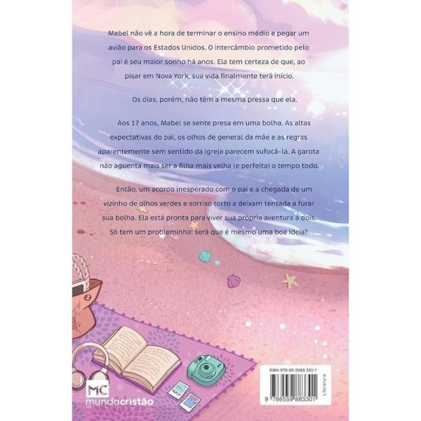 Mabel não vê a hora de terminar o ensino médio e pegar um avião para os Estados Unidos. O intercâmbio prometido pelo pai é seu maior sonho há anos. Ela tem certeza de que, ao pisar em Nova York, sua vida finalmente terá início. Os dias, porém, não têm a mesma pressa que ela. Aos 17 anos, Mabel se sente presa em uma bolha. As altas expectativas do pai, os olhos de general da mãe e as regras aparentemente sem sentido da igreja parecem sufocá-la. A garota não aguenta mais ser a filha mais velha (e perfeita) o tempo todo. Então, um acordo inesperado com o pai e a chegada de um vizinho de olhos verdes e sorriso torto a deixam tentada a furar sua bolha. Ela está pronta para viver sua própria aventura a dois. Só tem um probleminha: será que é mesmo uma boa ideia?