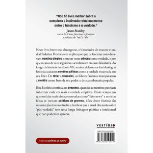 Neste livro breve mas abrangente, o historiador de renome mundial Federico Finchelstein explica por que os fascistas consideravam mentiras simples e muitas vezes odiosas como verdade, e por que muitos de seus seguidores acreditavam em suas falsidades. Ao longo da história do século XX, muitos defensores das ideologias fascistas consideraram mentiras políticas como a verdade encarnada em seu líder. De Hitler a Mussolini, os líderes fascistas capitalizaram com a mentira como base de seu poder e de sua soberania popular.