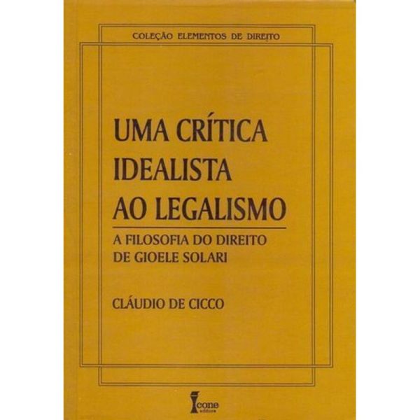 Título do livro : Uma Crítica Idealista Ao Legalismo. A Filosofia do Direito