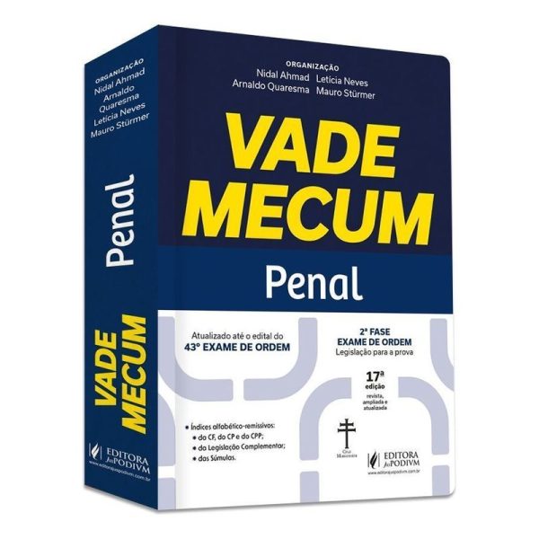 O Vade Mecum Penal foi criado especialmente para atender às necessidades dos candidatos ao Exame de Ordem que fizeram a opção pela área Penal na 2ª fase do certame. A obra é organizada pelos experientes e renomados Professores Nidal Ahmad, Arnaldo Quaresma, Letícia Neves e Mauro Stürmer, que fizeram a seleção das normas, elaboraram as remissões e os índices alfabético-remissivos. O Vade traz os principais diplomas legais objeto de questionamento na 2ª fase do Exame da OAB e conta com diversos facilitadores de consulta como tarjas laterais com as seções do livro, cabeçalho, atualizações legislativas destacadas, entre outros. Esse Vade está atualizado até o edital do 43º Exame de Ordem e a sua consulta é permitida na 2ª fase, tornando-se um aliado fundamental durante a realização da prova para buscar as fundamentações e os argumentos jurídicos necessários para a aprovação.