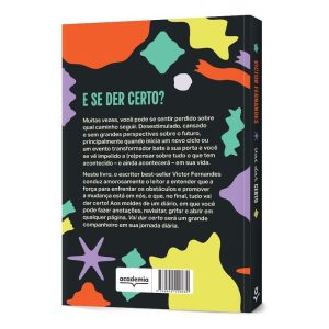 DIAS MELHORES VIRÃO: PODE ACREDITAR! Muitas vezes, você pode se sentir perdido sobre qual caminho seguir. Desestimulado, cansado e sem grandes perspectivas sobre o futuro, principalmente quando inicia um novo ciclo ou um evento transformador bate à sua porta e você se vê impelido a (re)pensar sobre tudo o que tem acontecido – e ainda acontecerá – em sua vida. Neste livro, o escritor best-seller Victor Fernandes conduz amorosamente o leitor a entender que a força para enfrentar os obstáculos e promover a mudança está em nós, e que, no final, tudo vai dar certo! Aos moldes de um diário, em que você pode fazer anotações, revisitar, grifar e abrir em qualquer página, Vai dar certo será um grande companheiro em sua jornada diária.