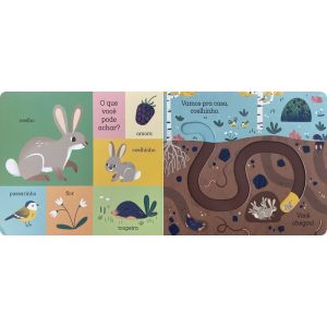 Os filhotes estão indo para a casa com suas mamães. No caminho, vão encontrar uma porção de coisas. Um lindo livro para bebês e primeiros leitores que auxilia na coordenação motora e apresenta as primeiras palavras para os pequenos.