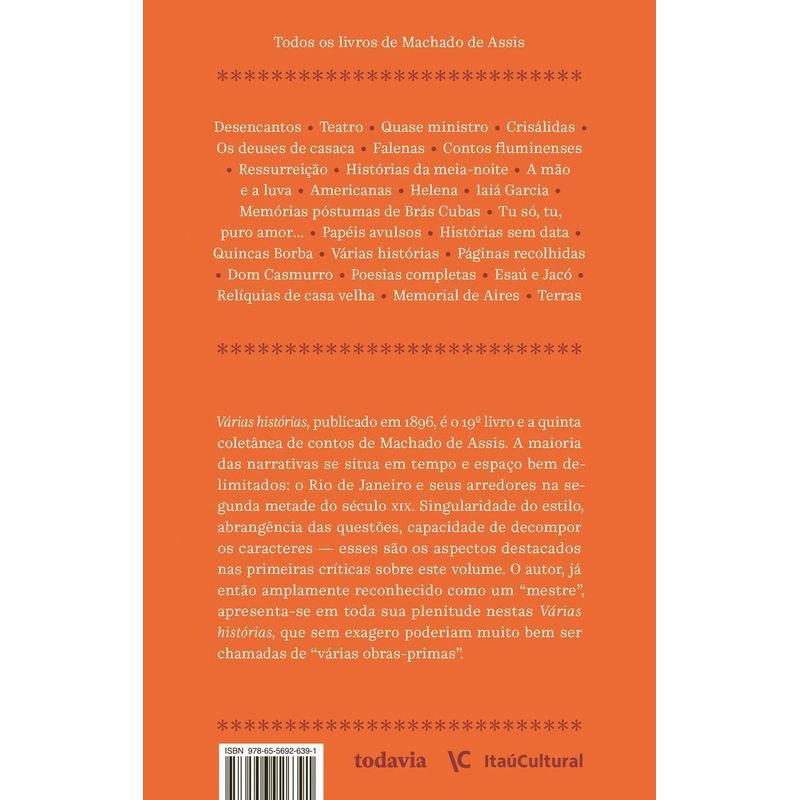 É o 19º livro e a quinta coletânea de contos de Machado de Assis. A maioria das narrativas se situa em tempo e espaço bem delimitados: o Rio de Janeiro e seus arredores na segunda metade do século xix. Singularidade do estilo, abrangência das questões, capacidade de decompor os caracteres — esses são os aspectos destacados nas primeiras críticas sobre o volume. O autor, já então amplamente reconhecido como um “mestre”, apresenta-se em toda sua plenitude nessas Várias histórias que, sem nenhum exagero, poderiam muito bem ser chamadas de “várias obras-primas”.