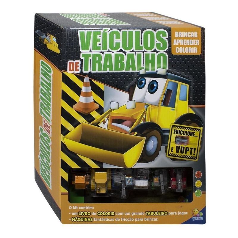 Ler, pintar e brincar para aprender se divertindo… E brincando com seus veículos de trabalho! No pacote você irá encontrar: – um livro para ler e colorir; – fantásticos veículos de trabalho de fricção para brincar.