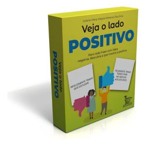 Com este livro-caixinha® as crianças vão treinar o cérebro para mudar o padrão cognitivo: o que é negativo pode ser visto de um jeito positivo. Os estudos da área de Psicologia Positiva e de Neurociências vêm ensinando a nutrir o cérebro para beneficiar a saúde mental, e isso pode ser aplicado às crianças. Esta obra traz 50 cartas: 25 que contêm pensamentos negativos fazem par com outras 25 cartas que têm pensamentos positivos, correspondentes a cada situação. Apresente as cartas e deixe a criançada se divertir positivamente.