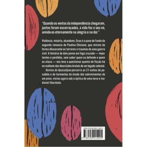 Violência, miséria, abandono. Esse é o pano de fundo do segundo romance de Paulina Chiziane, que retrata de forma dilacerante os terrores e traumas de uma guerra civil. “Quem escapa da fome não escapa da guerra; quem escapa da guerra é ameaçado pela fome. Os jovens arrumam a trouxa e partem. Os velhos, as mulheres e as crianças ficam.” Uma história de dois povos em fogo cruzado — impotentes e perdidos, sem saber quem os defende e quem os ataca —, Ventos do Apocalipse nos leva a questionar quanto de ficção há no realismo das descrições brutais de um legado colonial. Neste livro, Paulina Chiziane narra as 21 noites de pesadelo e de tormentos do êxodo dos sobreviventes de uma guerra sangrenta, vistos agora sob a ótica de uma nova e inadiável liberdade. “Publicado pela primeira vez em 1999, pouco depois do fim da guerra civil, este romance de Paulina Chiziane narra o dentro da gente. Quem, de que lugar ou tempo, nunca sentiu o vento assobiar mais forte pelas veias adentro, como vertigem? Ou o vento soprar fresco enchendo o peito de esperança? Mesmo em tempos de paz vivemos apocalipses íntimos, assim como durante as guerras sopram bons ventos.” — Bianca Santana, no texto de orelha desta edição.
