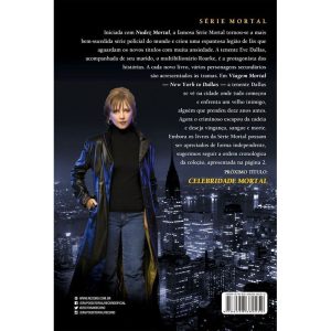 A fuga de um estuprador em série que Eve Dallas prendeu doze anos atrás leva a tenente à sua cidade natal — e a mergulhar nos pesadelos de sua infância traumática… Iniciada com Nudez Mortal, a famosa Série Mortal tornou-se a mais bem-sucedida série policial do mundo e criou uma espantosa legião de fãs que aguardam os novos títulos com muita ansiedade. A tenente Eve Dallas, acompanhada de seu marido, o multibilionário Roarke, é a protagonista das histórias. Um dos primeiros criminosos que Eve Dallas prendeu, ainda quando recruta, o monstro Isaac McQueen raptava e estuprava garotinhas, deixando-as para sempre com cicatrizes no corpo e na alma. Graças a Eve, o pedófilo acabou atrás das grades, longe do convívio da sociedade. Por doze anos, a fera ficou enjaulada. Não mais. Depois de uma fuga improvável, Isaac tem apenas duas coisas em mente: primeiro, continuar sua vida de onde tinha parado, atuando como predador de meninas inocentes, sempre com o auxílio de uma parceira mais velha que atrai e engana as vítimas; segundo, se vingar da mulher que interrompeu sua vida no crime tantos anos antes, agora uma respeitada tenente da Polícia de Nova York, casada com um dos homens mais ricos da cidade. Atraindo a atenção de Eve com um crime perverso e ousado, Isaac dá início a sua caçada pessoal, forçando Eve a enveredar por uma estrada pavimentada com sangue e lágrimas. Uma estrada que, por fim, levará a Dallas, Texas, o lugar onde Eve enterrara um passado sombrio. E cada nova reviravolta no caso a aproxima da pungente lembrança de sua infância, quando era uma menina vulnerável e muito parecida com as vítimas inocentes de Isaac. Enquanto seu marido, Roarke, tenta resgatá-la dos pesadelos constantes que ainda a afligem e sua parceira Peabody trabalha de forma incansável para ajudá-la, Eve precisa enfrentar e vencer os fantasmas do passado para conseguir sobreviver. Viagem Mortal é o 33º volume da Série Mortal. As série pode ser lida tanto na sua ordem cronológica, que recomendamos para maior imersão nas histórias, ou como livros independentes. “A sempre incrível J. D. Robb coloca sua corajosa heroína, a tenente Eve Dallas, num acerto de contas com o passado. Os leitores conhecerão a fundo o caso que reuniu Feeney e Eve enquanto ela encara os demônios do passado.” — RT Book Reviews “J. D. Robb oferece o tipo de resposta rápida e ação defensiva que os fãs esperam de uma tenente do Departamento de Polícia de Nova York.” — Publishers Weekly