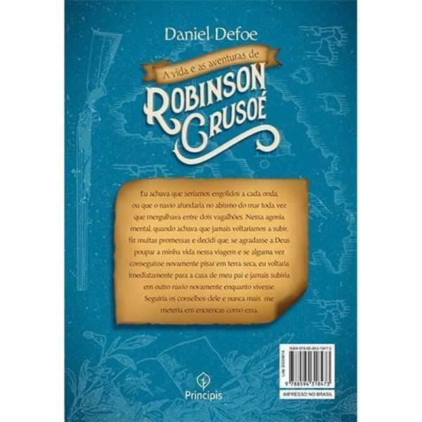 Uma tempestade faz o navio de Robinson Crusoé naufragar. Ele foi o único sobrevivente da tragédia, e precisa aprender a viver numa ilha deserta. Com os destroços do navio, ele aprende a construir ferramentas, cabanas e materiais para tornar sua vida mais fácil. Com reflexões e espiritualidade,Robinson consegue sobreviver em condições adversas.Um clássico da literatura inglesa consolidado no universo infantojuvenil há gerações.