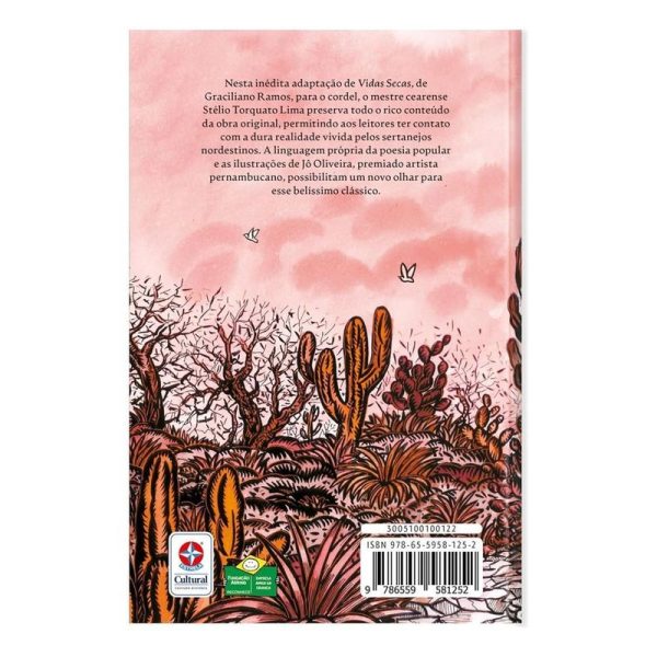 No romance Vidas Secas, clássico da nossa literatura, Graciliano Ramos acompanha o drama de uma família sertaneja que foge da seca. Fabiano, Sinha Vitória, o “menino mais velho” e o “menino mais novo” são acompanhados pela inseparável cadela Baleia. Com a chegada das chuvas, a família vive um pequeno período de tranquilidade, vindo Fabiano a se empregar como vaqueiro. Mas não demora para que ele volte a sentir a opressão e a exploração, sendo sub-remunerado e enganado nos acertos de conta, perpetuando uma relação de subserviência e impossibilidade de encontrar caminhos. Nesta inédita adaptação para o cordel, o mestre cearense Stélio Torquato Lima preserva todo o rico conteúdo da obra original, permitindo aos leitores ter contato com a realidade dura vivida pelos sertanejos nordestinos. A linguagem própria da poesia popular e as ilustrações de Jô Oliveira, o premiado ilustrador pernambucano, possibilitam um novo olhar para a belíssima obra de Graciliano