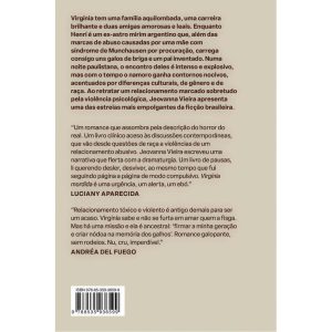 Ao retratar um relacionamento marcado sobretudo pela violência psicológica, Jeovanna Vieira apresenta uma das estreias mais empolgantes da ficção brasileira. Virgínia é uma carioca convicta radicada em São Paulo, que trabalha como advogada de dia e desfruta da cidade à noite. Certa vez, no Aparelha Luzia, encontra Henrí, um ator argentino que ela conhecia de vista, com quem tem uma conexão imediata. Mas é apenas questão de tempo até que aquele relacionamento tão intenso ganhe contornos nocivos, acentuados por diferenças culturais, de gênero e de raça. E, enquanto os flashbacks mostram a história dos dois, uma celebração no Bosque da Saúde vira o palco de uma série de eventos que colocará o namoro deles inteiro em perspectiva. Narrado com capítulos curtos em um ritmo vertiginoso, Jeovanna Vieira constrói uma obra de estreia aterradora, que explora a complexidade humana em todas as suas formas: nossas fragilidades e nossos defeitos, a capacidade que temos de infligir dor em nome do amor e, sobretudo, o poder de sermos resgatados, mesmo quando nos falta coragem. “Um romance que assombra pela descrição do horror do real. Um livro clínico aceso às discussões contemporâneas, que vão desde questões de raça a violências de um relacionamento abusivo. Jeovanna Vieira escreveu uma narrativa que flerta com a dramaturgia. Um livro de pausas, li querendo desler, desviver, ao mesmo tempo que fui seguindo página a página de modo compulsivo. Virgínia mordida é uma urgência, um alerta, um ebó.” — Luciany Aparecida “Relacionamento tóxico e violento é antigo demais para ser um acaso. Virgínia sabe e não se furta em amar quem a fisga. Mas há uma missão e ela é ancestral: ‘firmar a minha geração e criar nódoa na memória dos galhos’. Romance galopante, sem rodeios. Nu, cru, imperdível.” — Andréa del Fuego