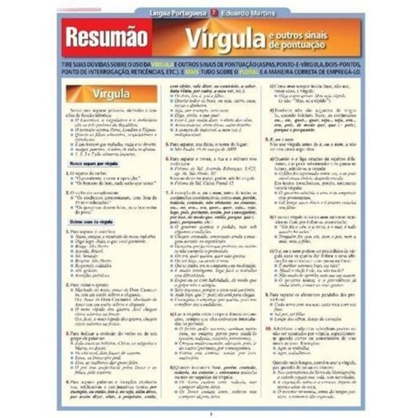 Título do livro : VIRGULA E OUTROS SINAIS DE PONTUACAO – RESUMAO