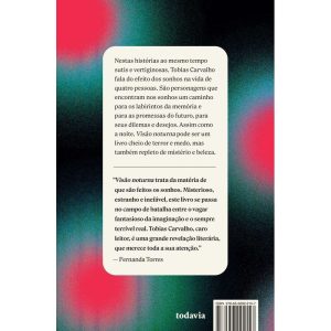 Nestas histórias ao mesmo tempo sutis e vertiginosas, Tobias Carvalho fala do efeito dos sonhos na vida de quatro pessoas. São personagens que encontram caminhos para os labirintos da memória e para as promessas do futuro, para seus dilemas e desejos. Este livro mostra um autor de grande imaginação, que transforma um tema antigo em algo novo, como se estivéssemos em frente a algo familiar e ao mesmo tempo totalmente desconhecido.