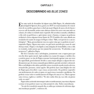 As “Zonas Azuis (Blue Zones)” são as regiões extraordinárias localizados em diferentes partes do planeta, nas quais a população local tem a maior longevidade, a menor taxa de doenças (câncer, obesidade, diabetes, doenças cardiovasculares, entre outras) e a melhor qualidade de vida e bem estar, quando comparada com outros povos de outras regiões da Terra. Neste livro revolucionário, o autor best-seller internacional Dan Buettner revela os segredos dessas regiões e seus povos, e descreve detalhadamente como podemos incorporar em nosso cotidiano as dietas e hábitos que prolongam as vidas dessas pessoas. Baseado em suas extensas reportagens e nas pesquisas exaustivas de sua equipe de especialistas da National Geographic Society, uma das maiores e mais conceituadas instituições científicas e educacionais do mundo, Dan extraiu os fatores-chave que fazem os residentes das Zonas Azuis viverem mais, e melhor, com mais saúde, felicidade e serenidade.